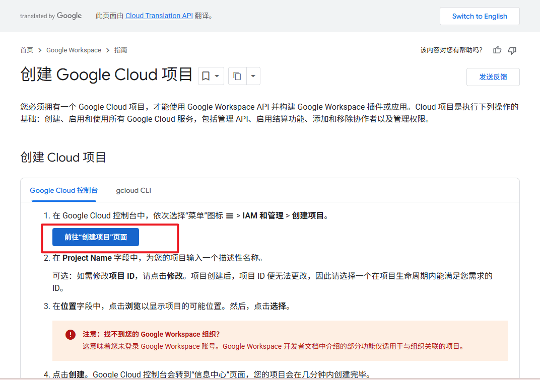 打开这个地址(官方文档链接):https://developers.google.com/workspace/guides/create-project?hl=zh-cn